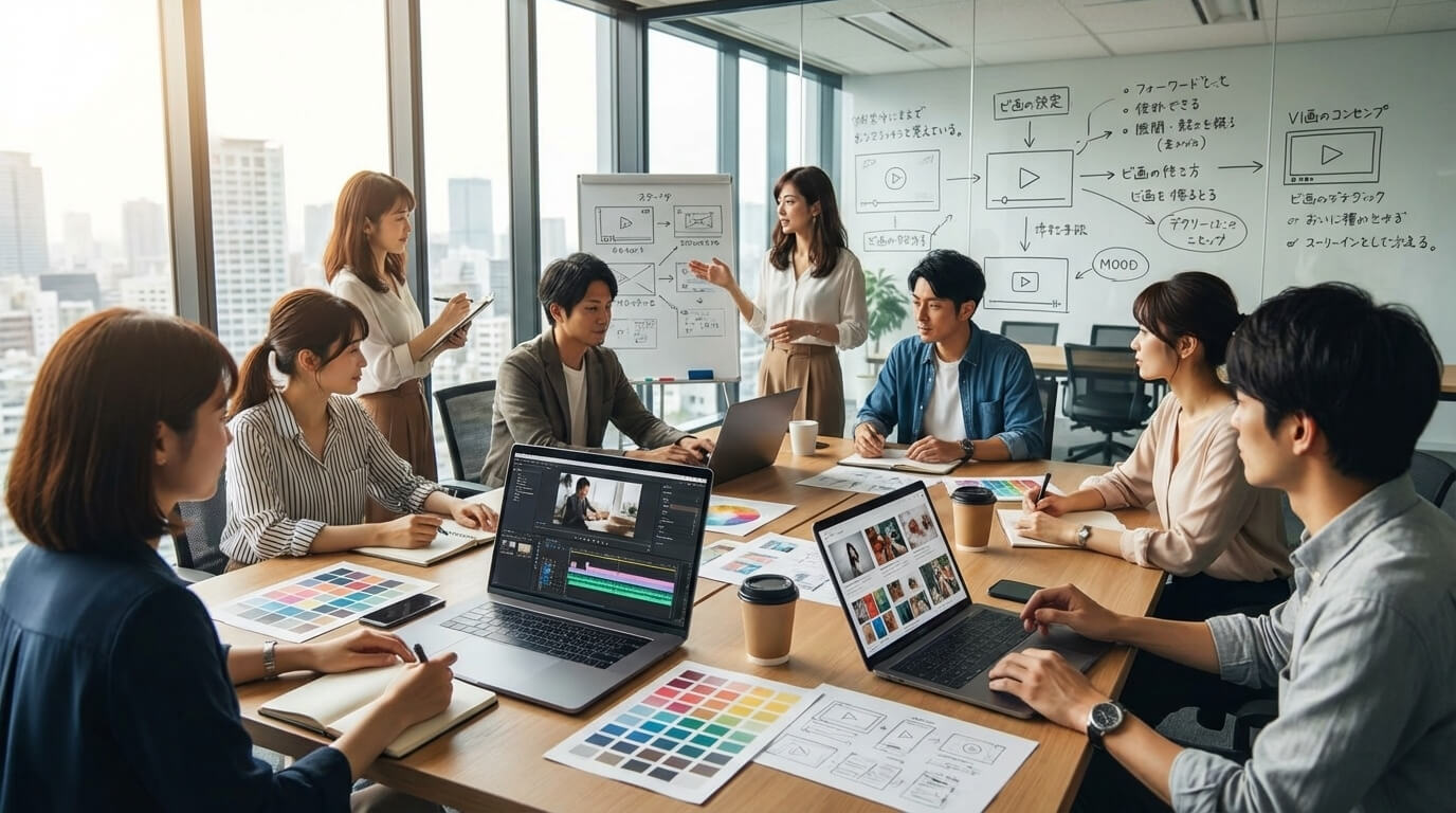 最初の工程は、ブランドの核を掘り下げる「対話」です。制作会社が企業のビジョンや強み、ターゲット、課題を丁寧にヒアリングし、動画全体のコンセプトを設計します。ここにどれだけ時間をかけるかが完成品の品質を大きく左右するでしょう。