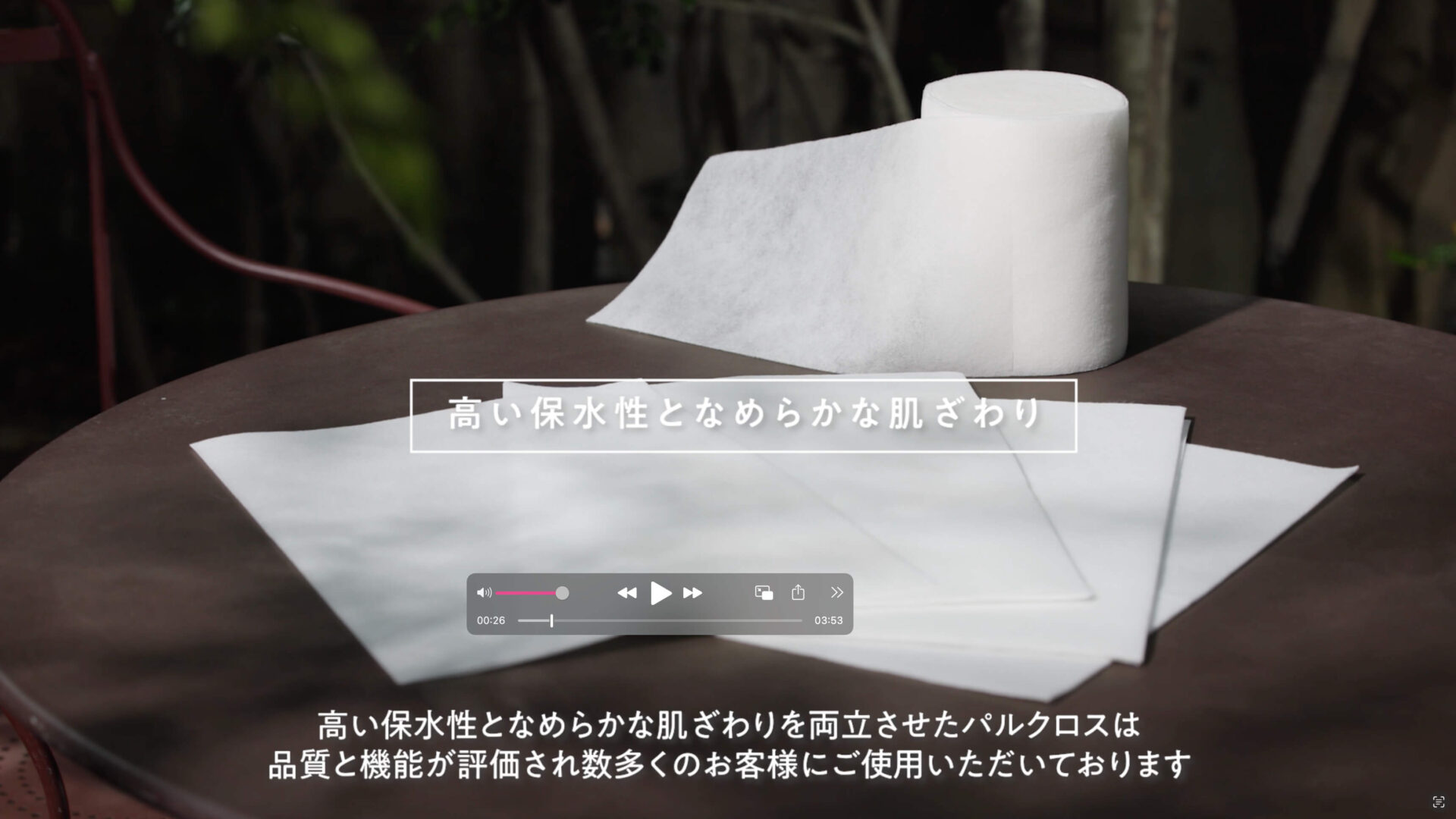 今回、私たちアクエリアスが商品紹介動画を制作させていただいたのは、王子キノクロス様の主力製品である、美容向けフェイスマスク素材「パルクロス」です。